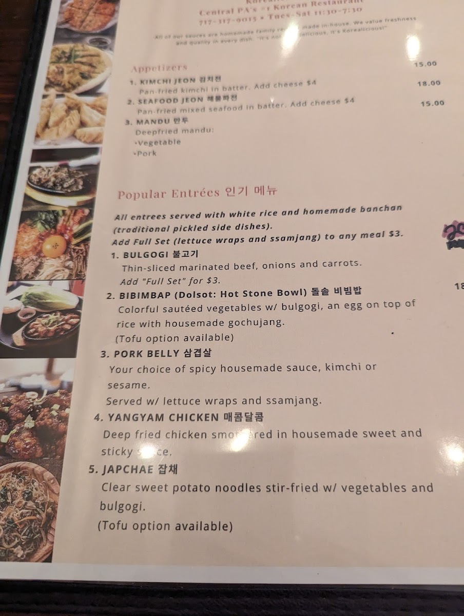 Welcome to Korealicious, a delightful gem located at 829 State St Suite 1007, Lemoyne, PA. Here, you’ll embark on a true Korean culinary journey. The menu boasts a variety of authentic dishes, with standout items like the Haemul Pa Jeon (Seafood Pancake) and Kimchi Jeon, both rich in flavor and freshness.